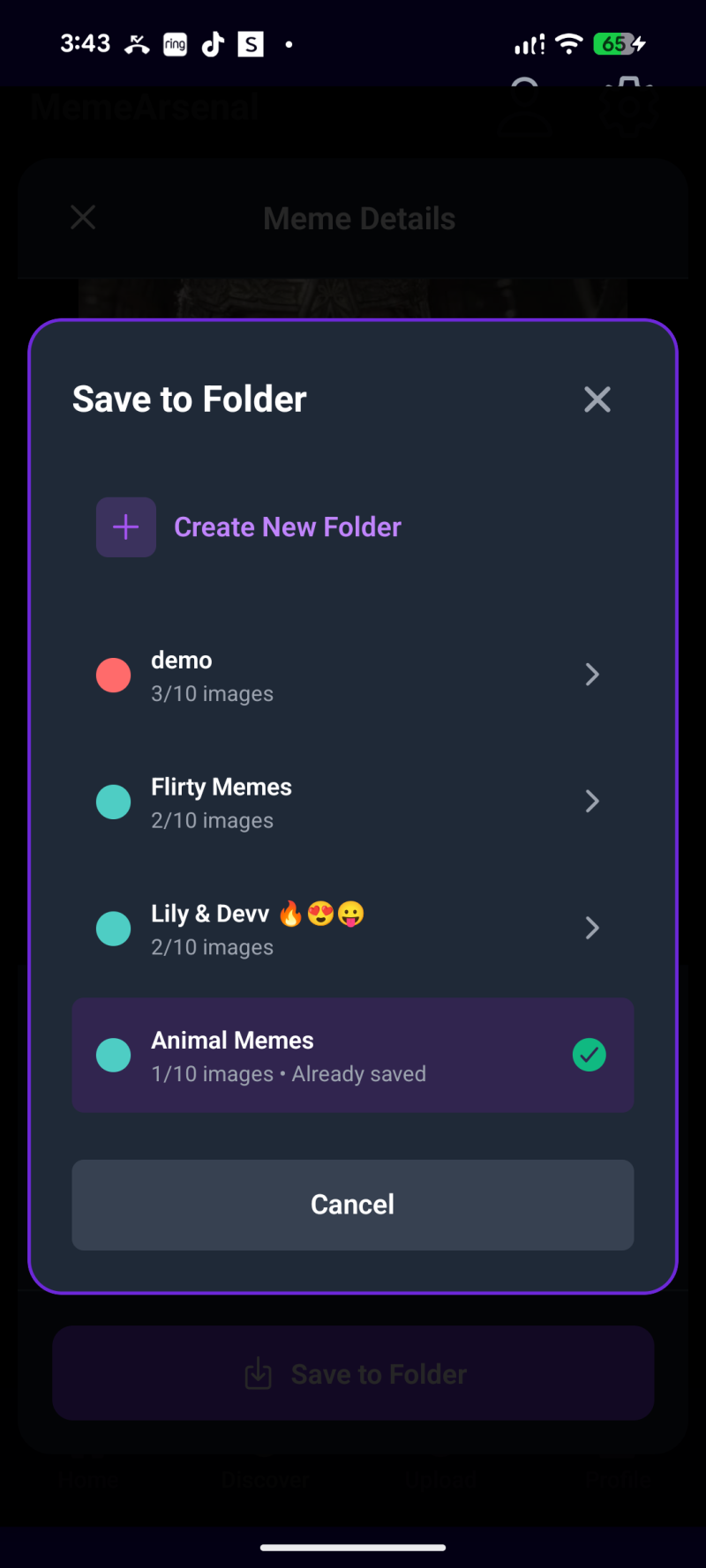 This solves a problem both for me, think of it like, Pinterest, but for memes. People can save their own folders of their categorized memes, and effectively find that one relevant meme to share it.