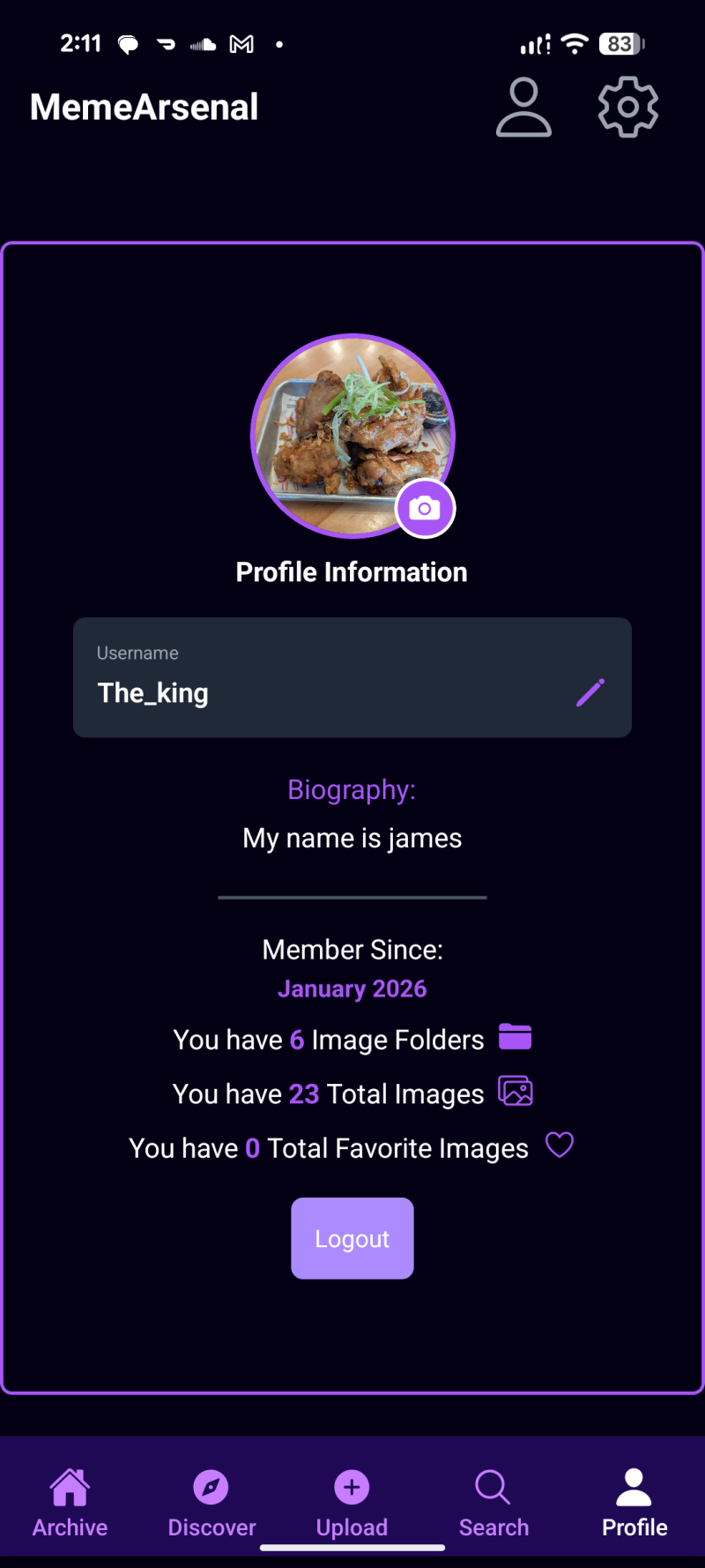 All of this backend logic is important because it gives the app a real sense of account ownership and sync: folders, memes, favorites, and profiles are all tied to a user, stored centrally, and can be fetched again on any device. My React Native code mostly just calls small helper functions that talk to Supabase and then updates local state to match whatever the backend says.